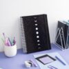 Elegí tu cuaderno, agregá o cambiá el tipo de hoja por el que mas te guste (puede ser rayado, cuadriculado, puntos guía, liso, blancos o de color, hojas en degradé y mas), elegí tus extras (separadores, organizadores mensuales o mas)!