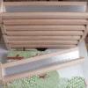 Cunas de perforado de cuadernillos realizadas en madera de Eucaliptus de 2.5cm de espesor.