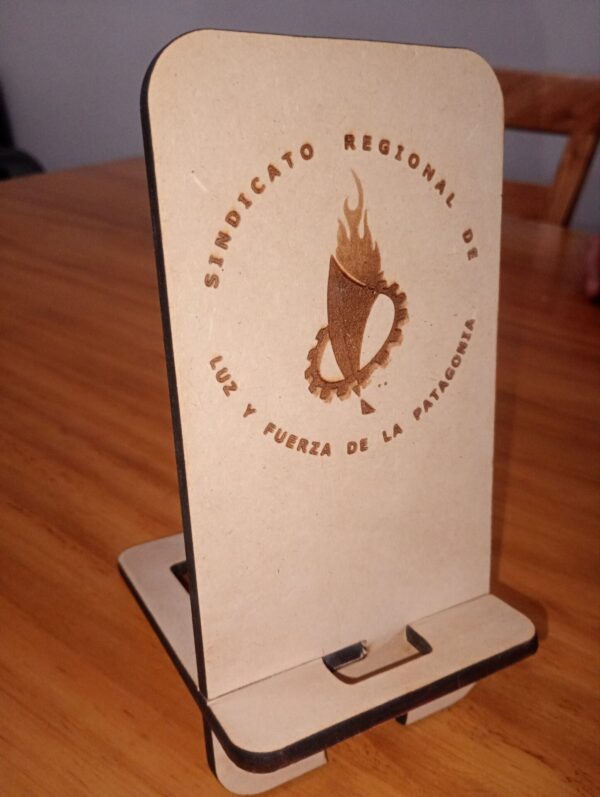 Porta celular personalizado realizado con corte laser en mdf de 5mm con grabado o calado a elección. En crudo. Ideal souvenirs. Precio por cantidad.